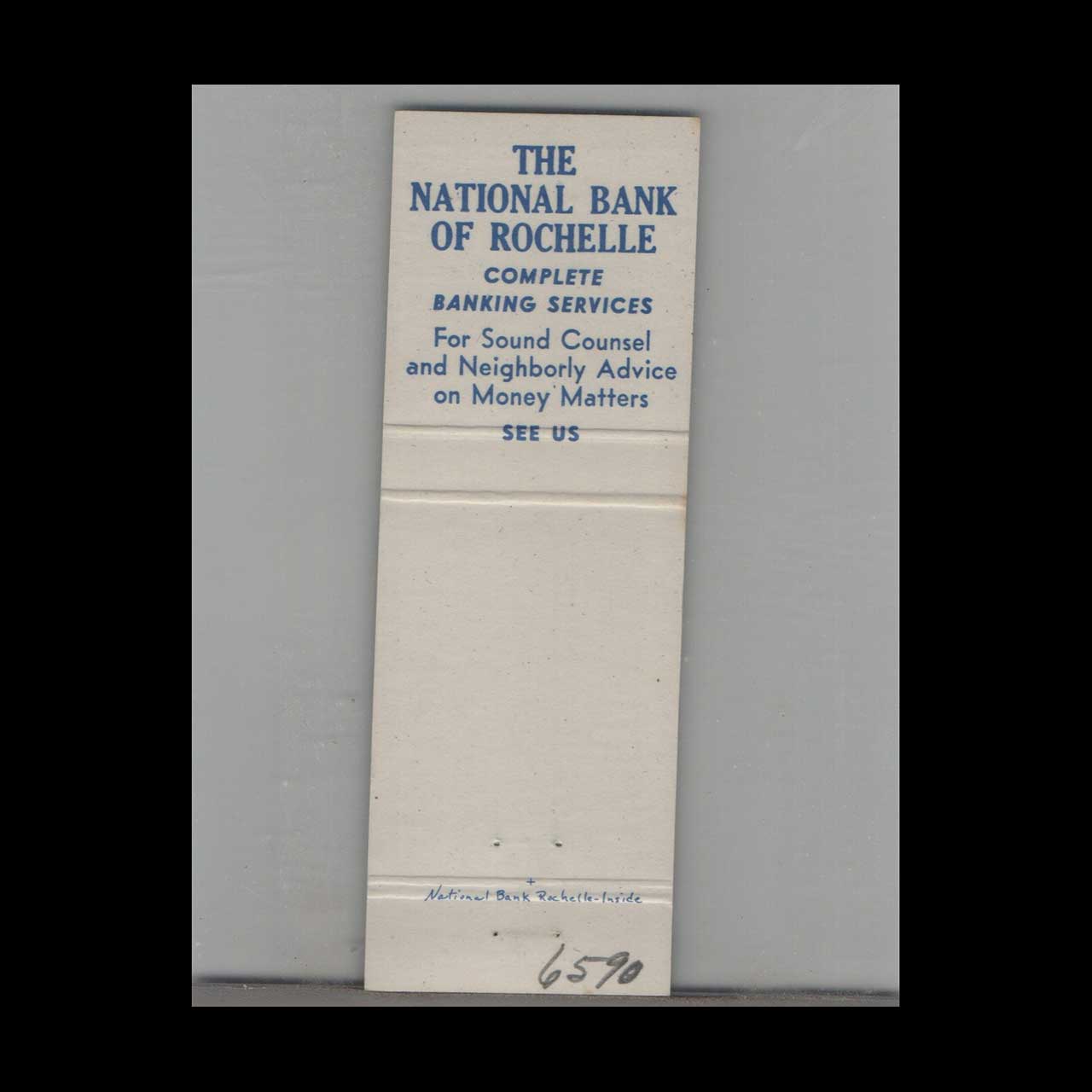 Vintage matchbook cover advertising The National Bank Of Rochelle, IL.