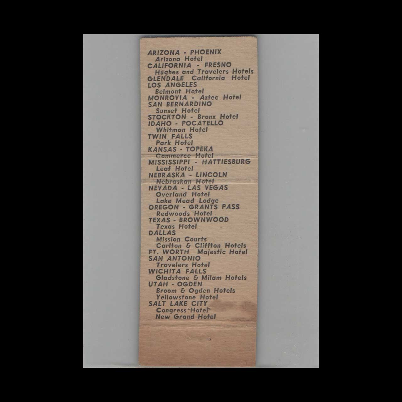 Vintage matchbook cover advertising The New Congress Hotel Salt Lake City UT.