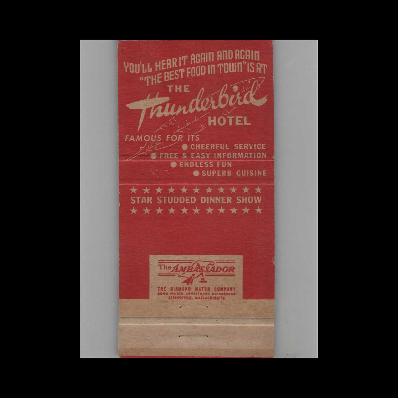 Vintage matchbook cover advertising Thunderbird Hotel Las Vegas NV.