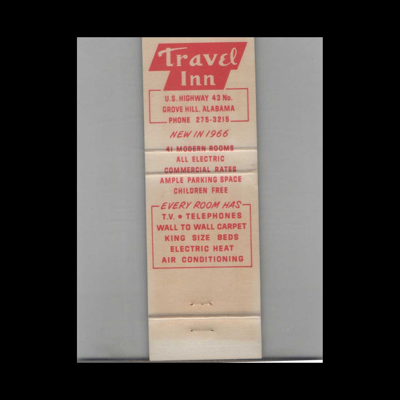 Vintage matchbook cover advertising Travel Inn Motel Grove Hill, AL.