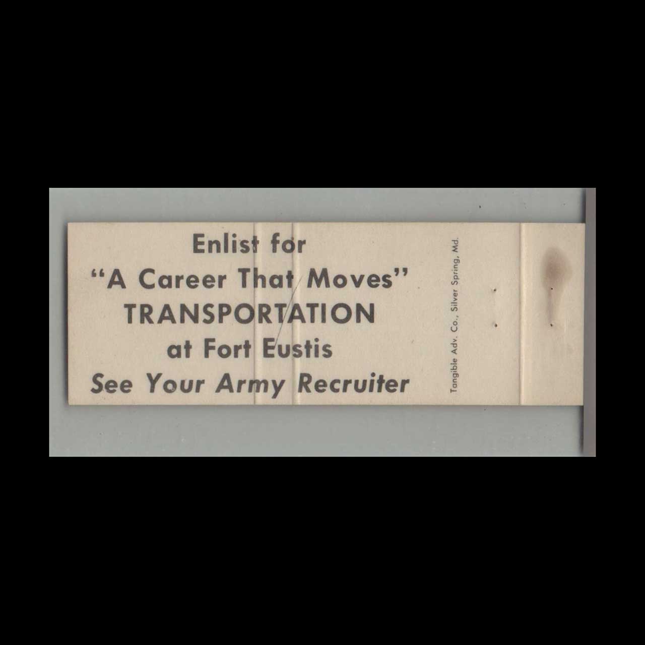 Vintage matchbook cover advertising US Military Fort Eustis Virginia Station Of Choice.