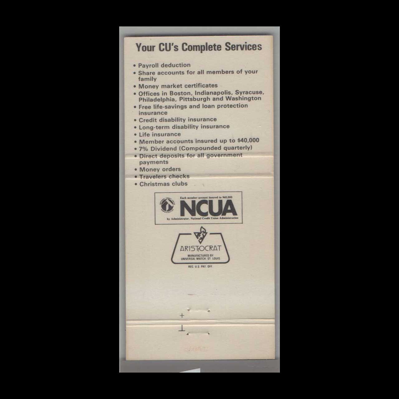 Vintage matchbook cover advertising USAir Airlines Federal Credit Union.