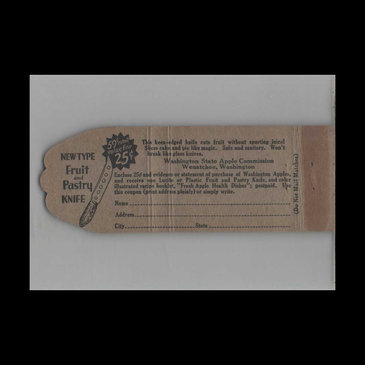 Vintage matchbook cover advertising Washington State Apples Are Best When Cold & Crisp.
