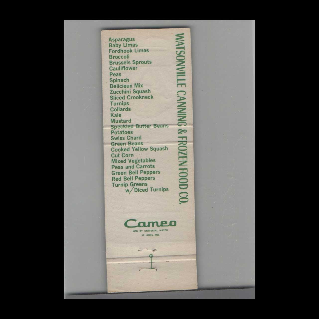 Vintage matchbook cover advertising Watsonville Canning & Frozen Food Company.