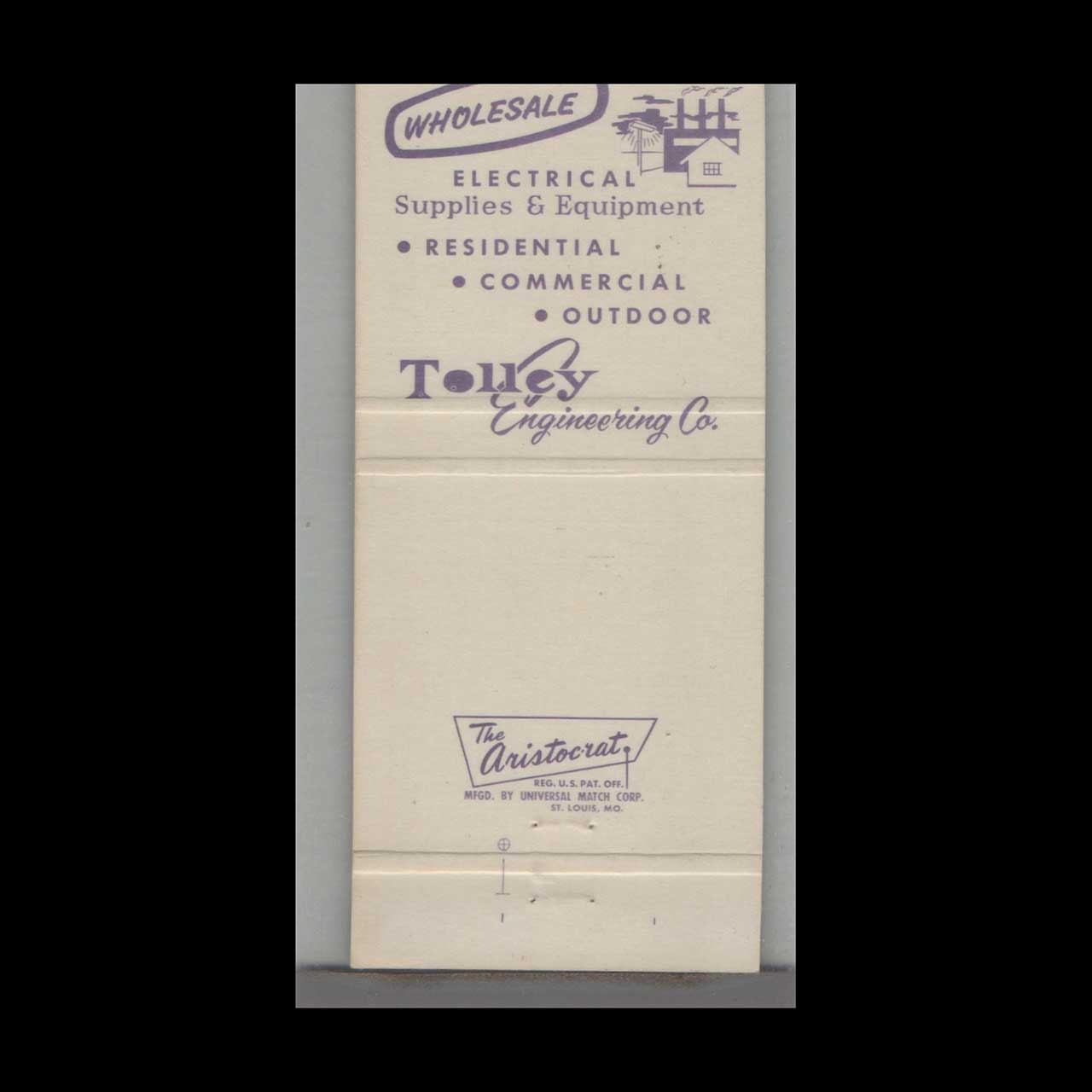 Vintage matchbook cover advertising West Virginia Tolley Engineering Clarksburg, WV.