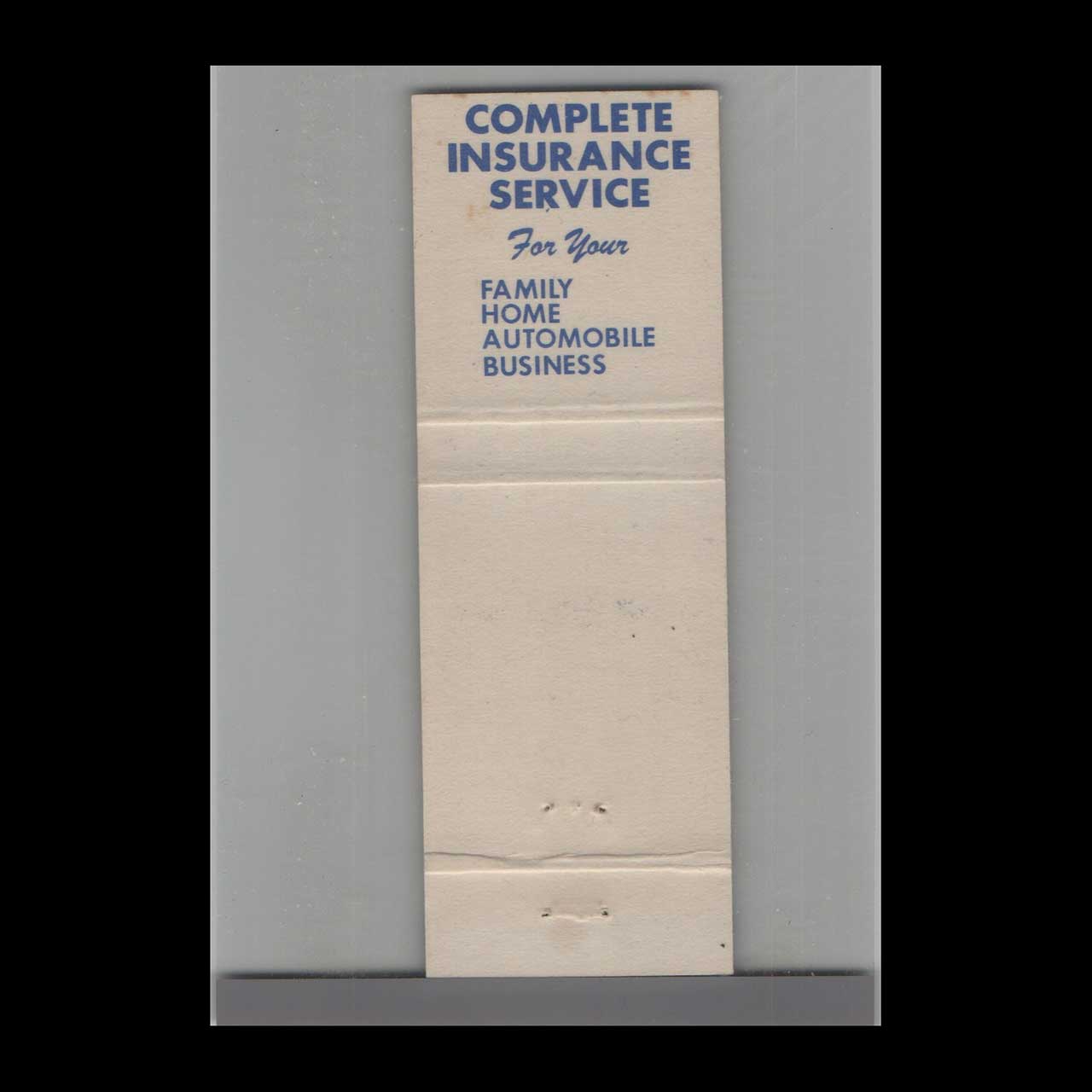 Vintage matchbook cover advertising Williams Cleveland Insurance New Castle, PA.