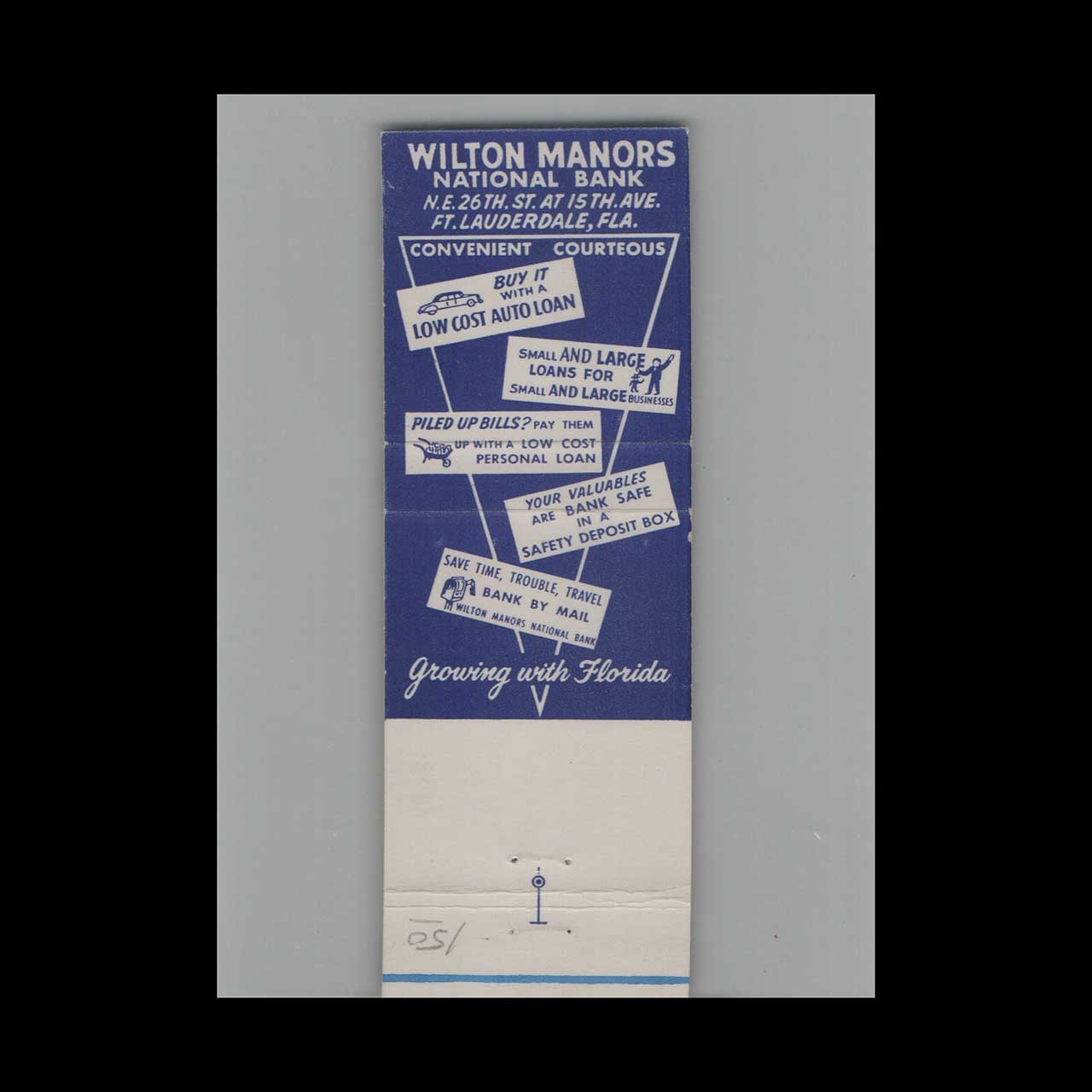 Vintage matchbook cover advertising Wilton Manors National Bank Ft. Lauderdale, FL #5.