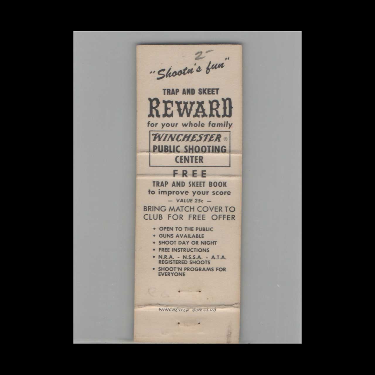 Vintage matchbook cover advertising Winchester Public Shooting Center Ft. Lauderdale, FL.