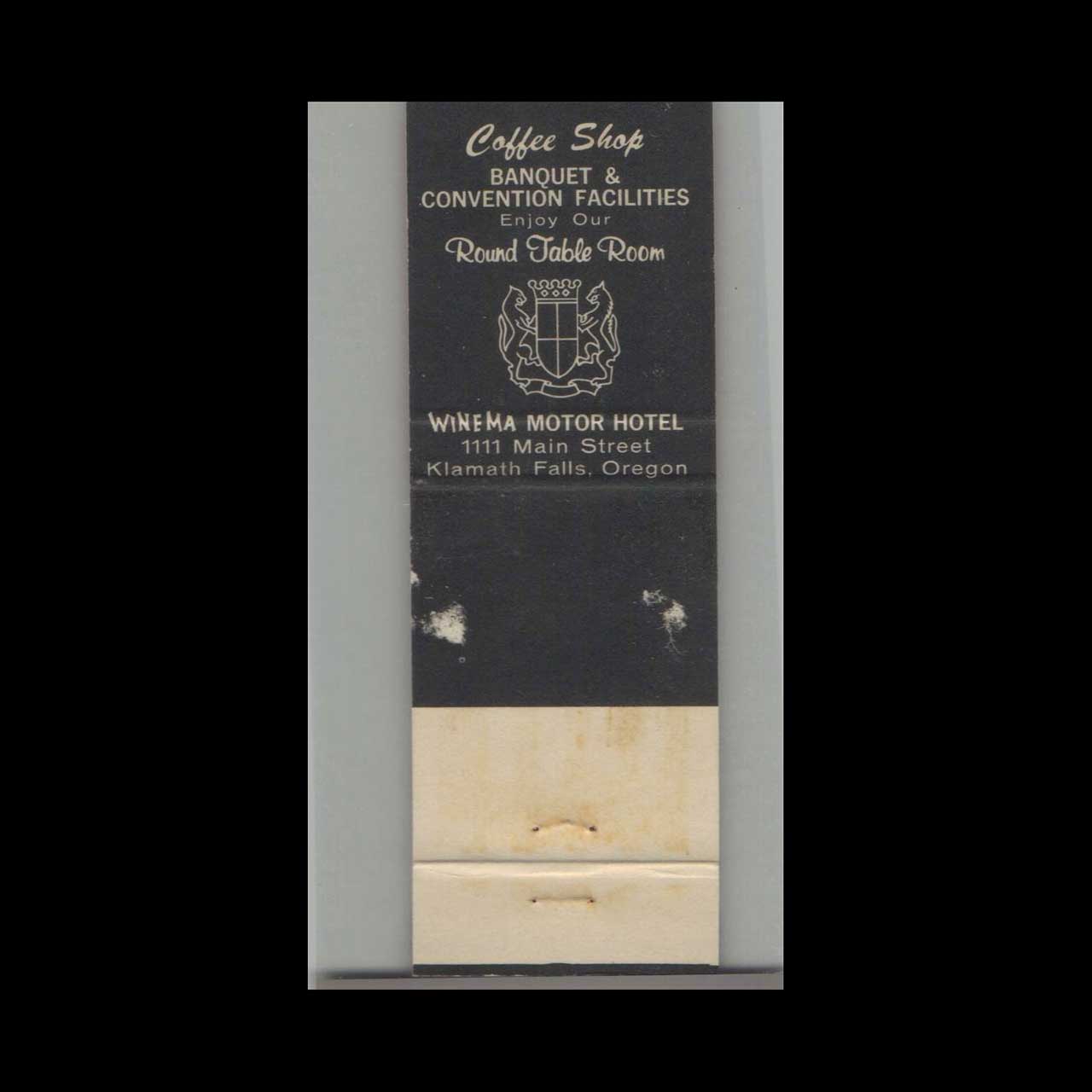 Vintage matchbook cover advertising Winema Motor Hotel Klamath Falls, OR.