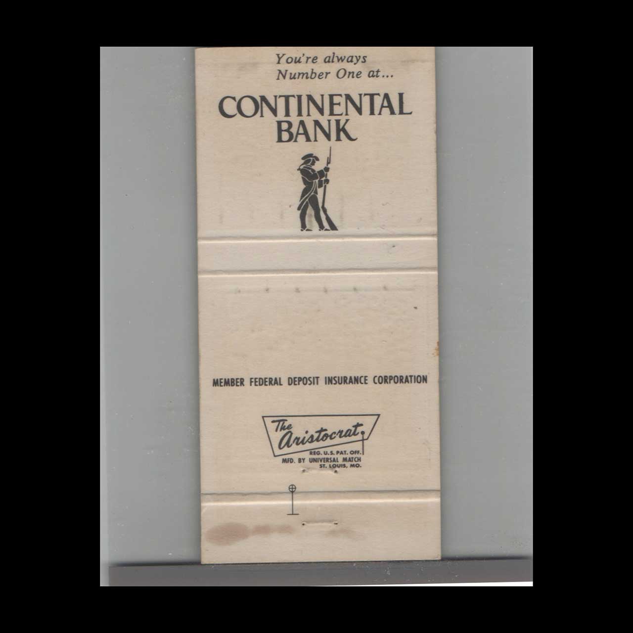 Vintage matchbook cover advertising You’re Always Number One At Continental Bank.