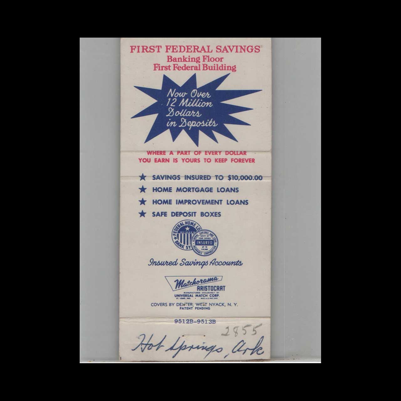 Matchorama Matchbook Cover First Federal Savings Hot Springs, AR