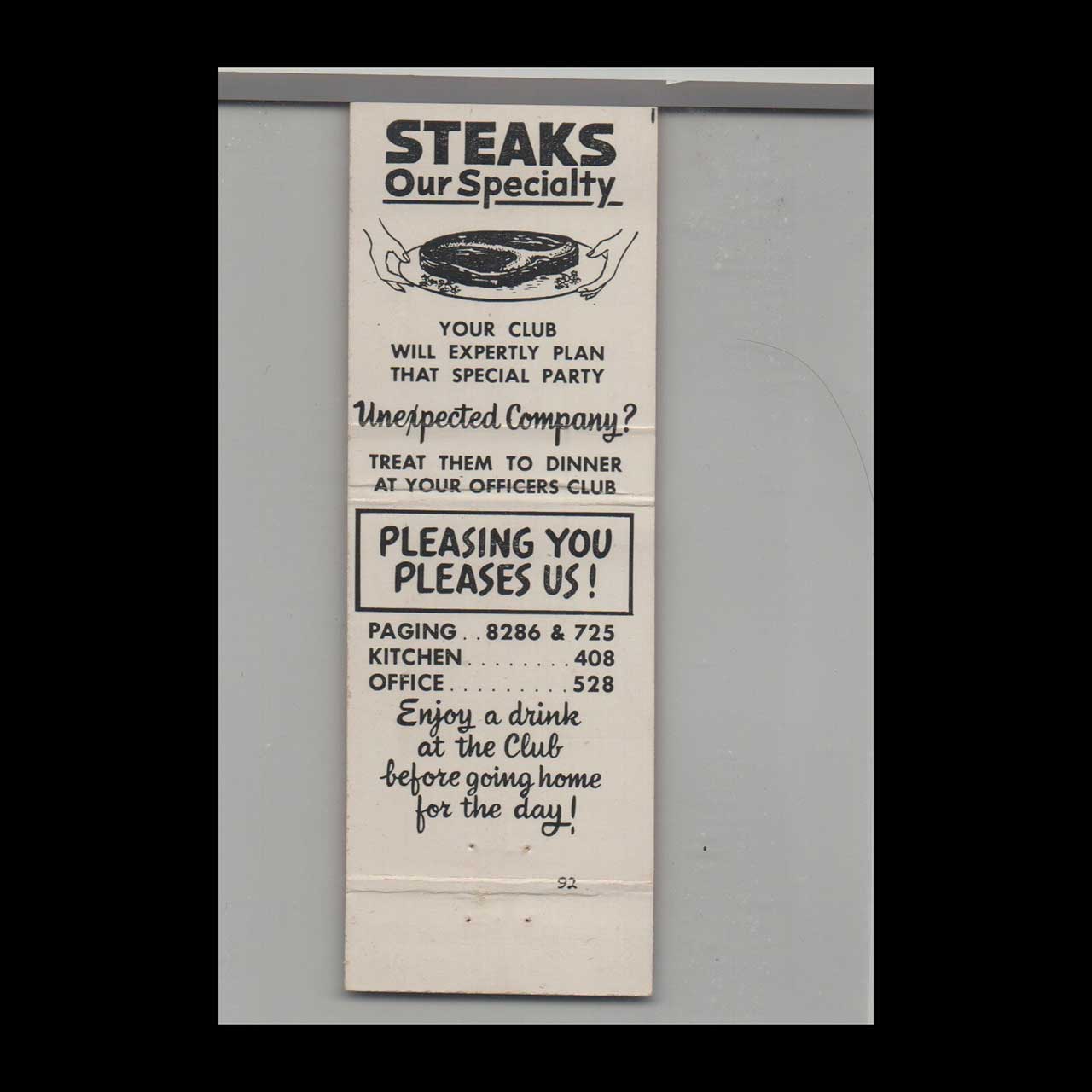 McCoy Air Force Base Officers’ Club in Orlando, FL, served as a distinguished social hub for military personnel. This vintage matchbook is a nostalgic piece of Americana for collectors.