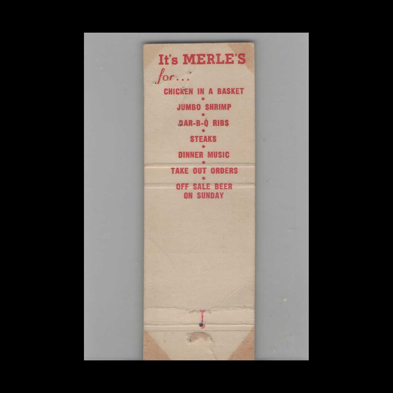 Merle’s Country Side Cafe served classic Southern comfort with its famous Henny Penny Fried Chicken. A nostalgic piece of Americana for vintage matchbook collectors.