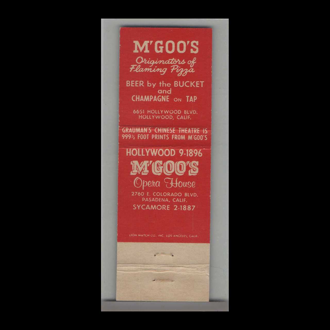 M’Goo’s Flaming Pizza at the Rose Bowl in Pasadena, CA, served up fiery pies in a vibrant, iconic setting. This vintage matchbook is a classic ephemera relic cherished by Americana collectors.