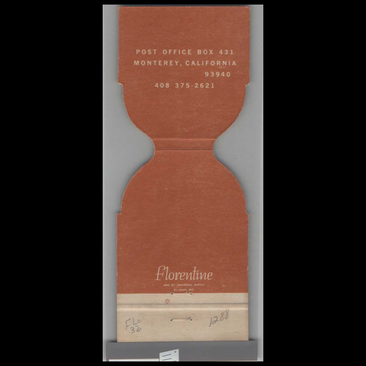Monterey Hospital Die Cut Matchbook Cover