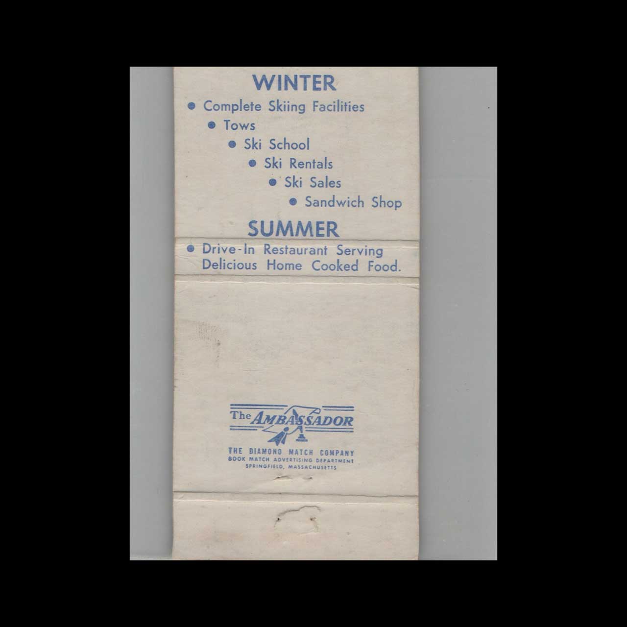 Moon Valley Ski Area in Shakopee, MN, offered winter sports and scenic slopes for outdoor enthusiasts. This vintage matchbook is a nostalgic piece of Americana for collectors.