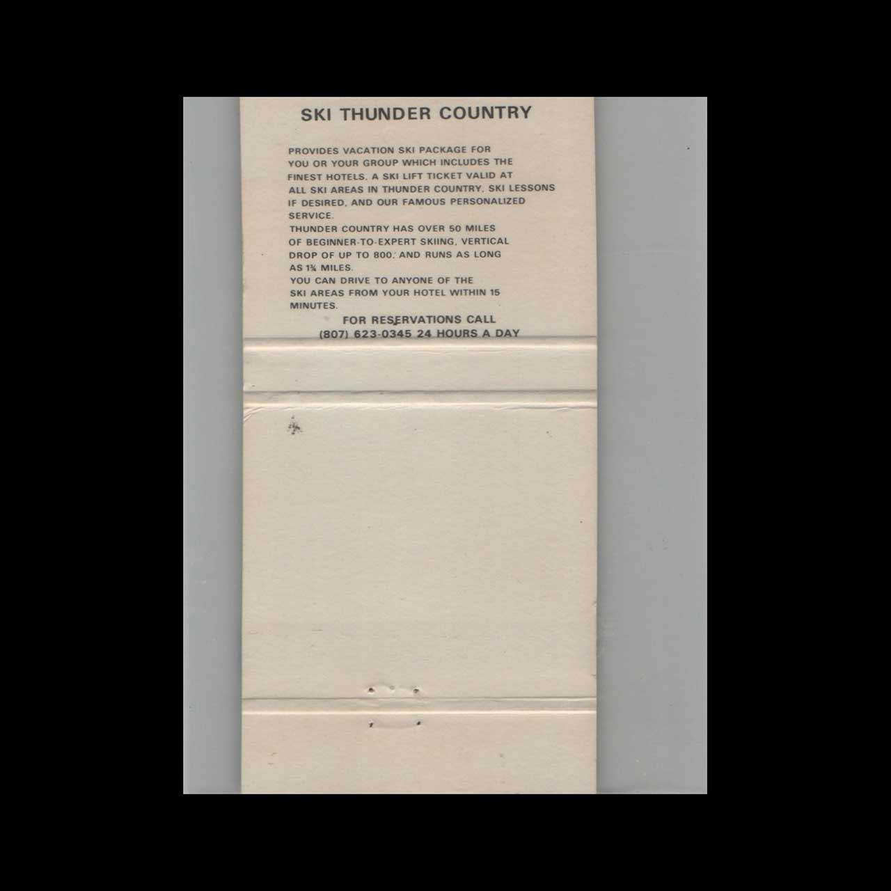 Mount Norquay Ski Area Matchbook Cover Thunder Bay ON