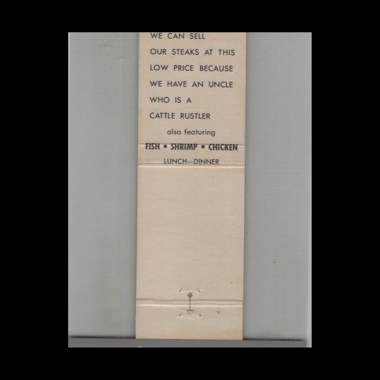 Discover the iconic Mr. Angus Black Angus Steak House, a celebrated dining destination known for its hearty steaks and classic ambiance. This vintage matchbook is a nostalgic piece of Americana for collectors and enthusiasts of classic ephemera.