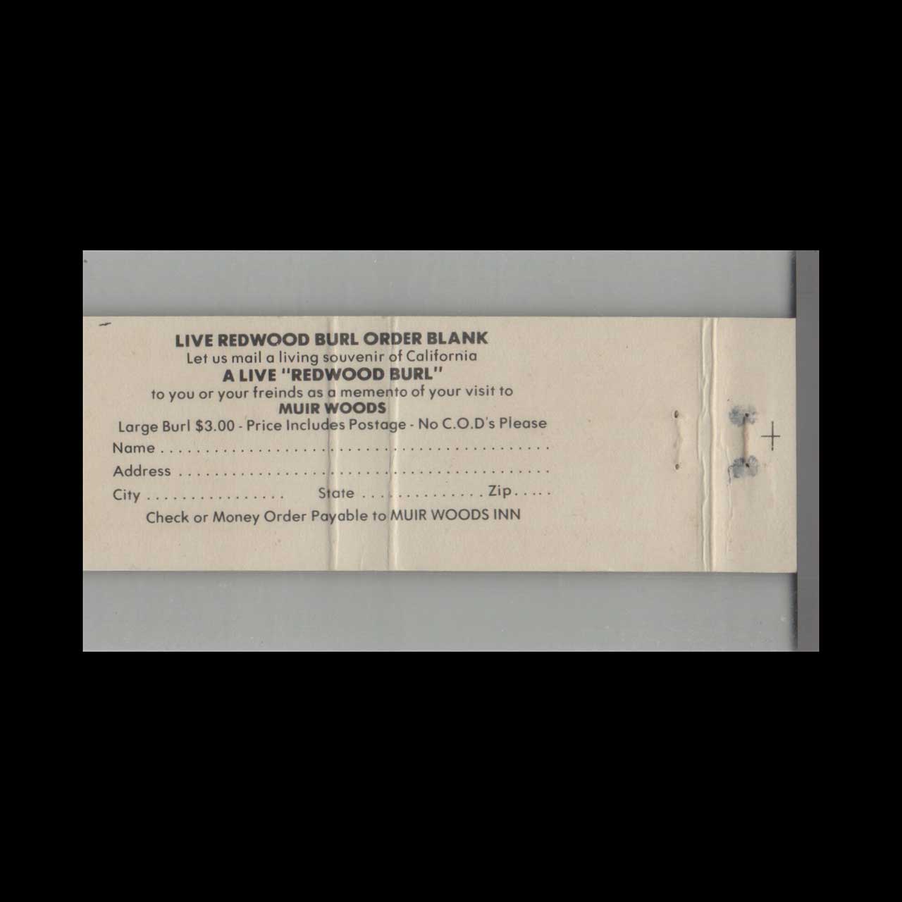 Discover the charming Muir Woods Inn in Mill Valley, CA, a historic retreat nestled near towering redwoods. This vintage matchbook is a classic ephemera relic cherished by Americana collectors.