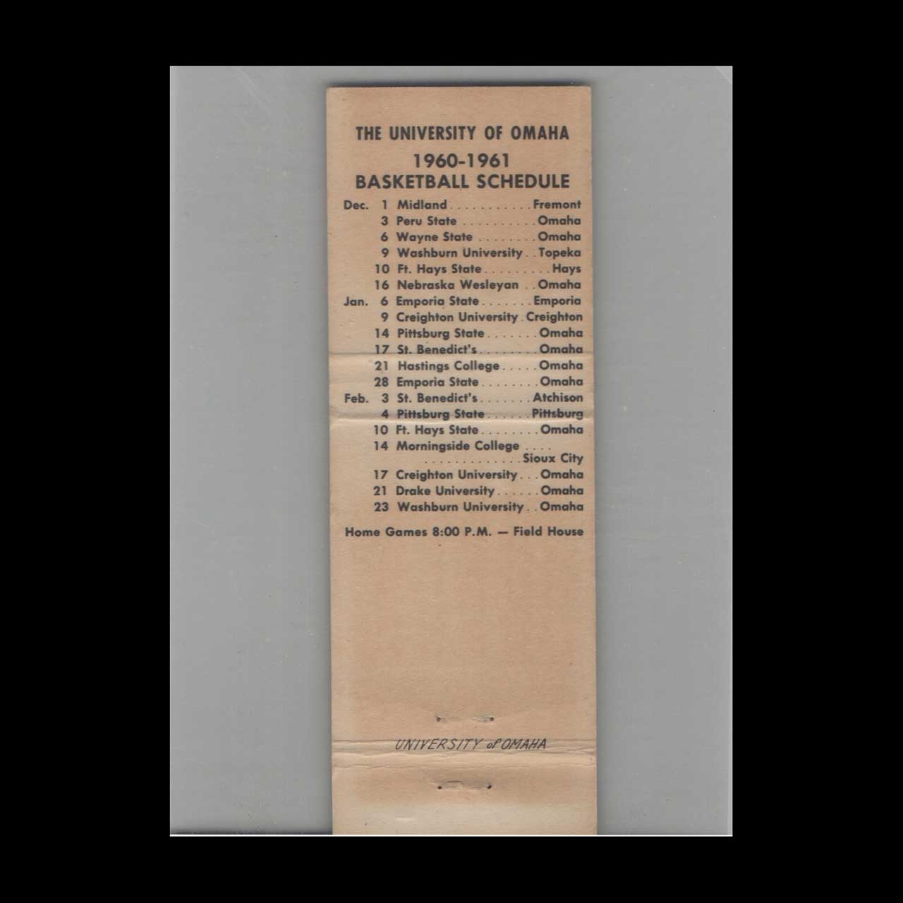 Municipal University of Omaha Matchbook Cover, NE