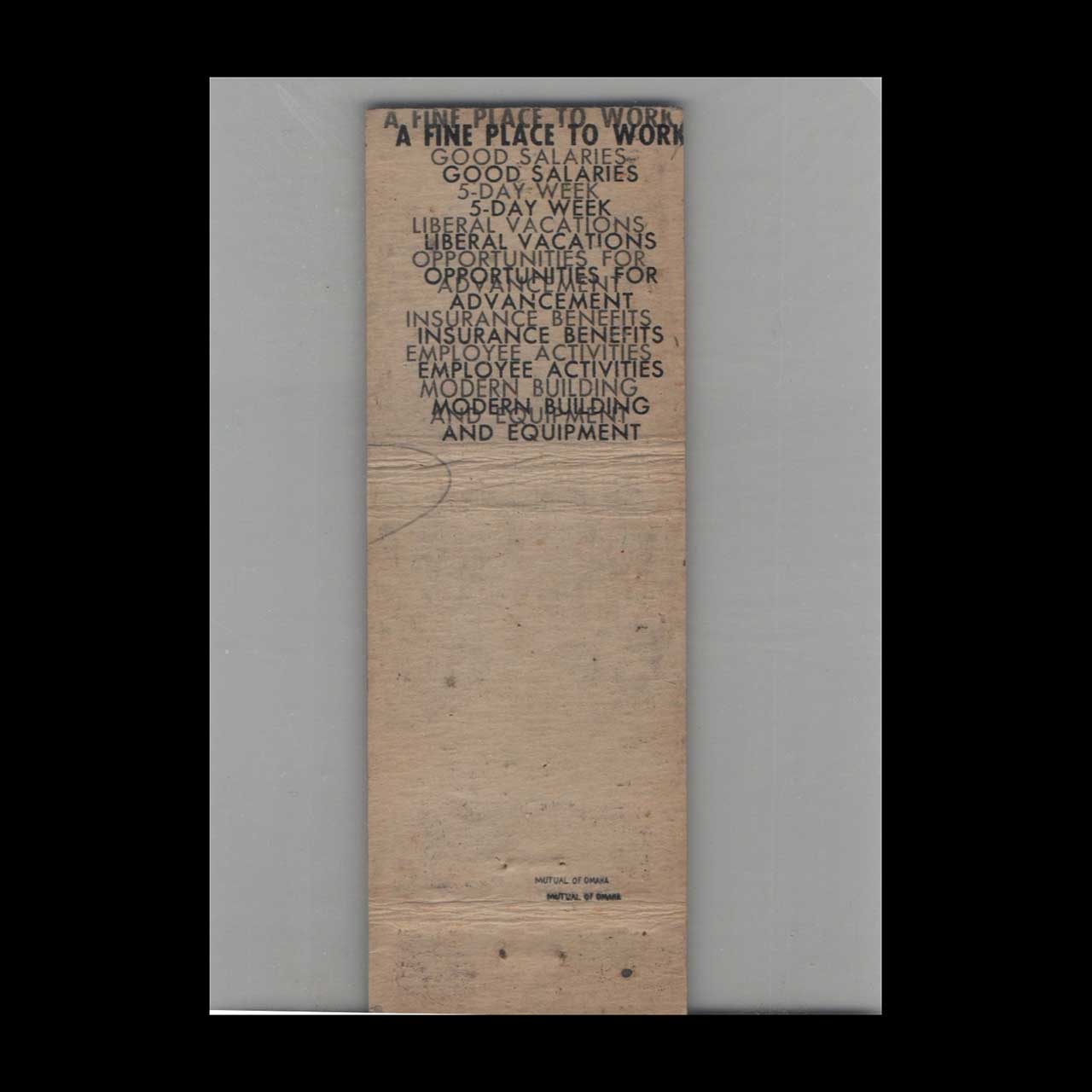 Mutual of Omaha Home Office in Omaha, NE, a cornerstone of American insurance heritage. A classic ephemera relic cherished by vintage matchbook collectors.