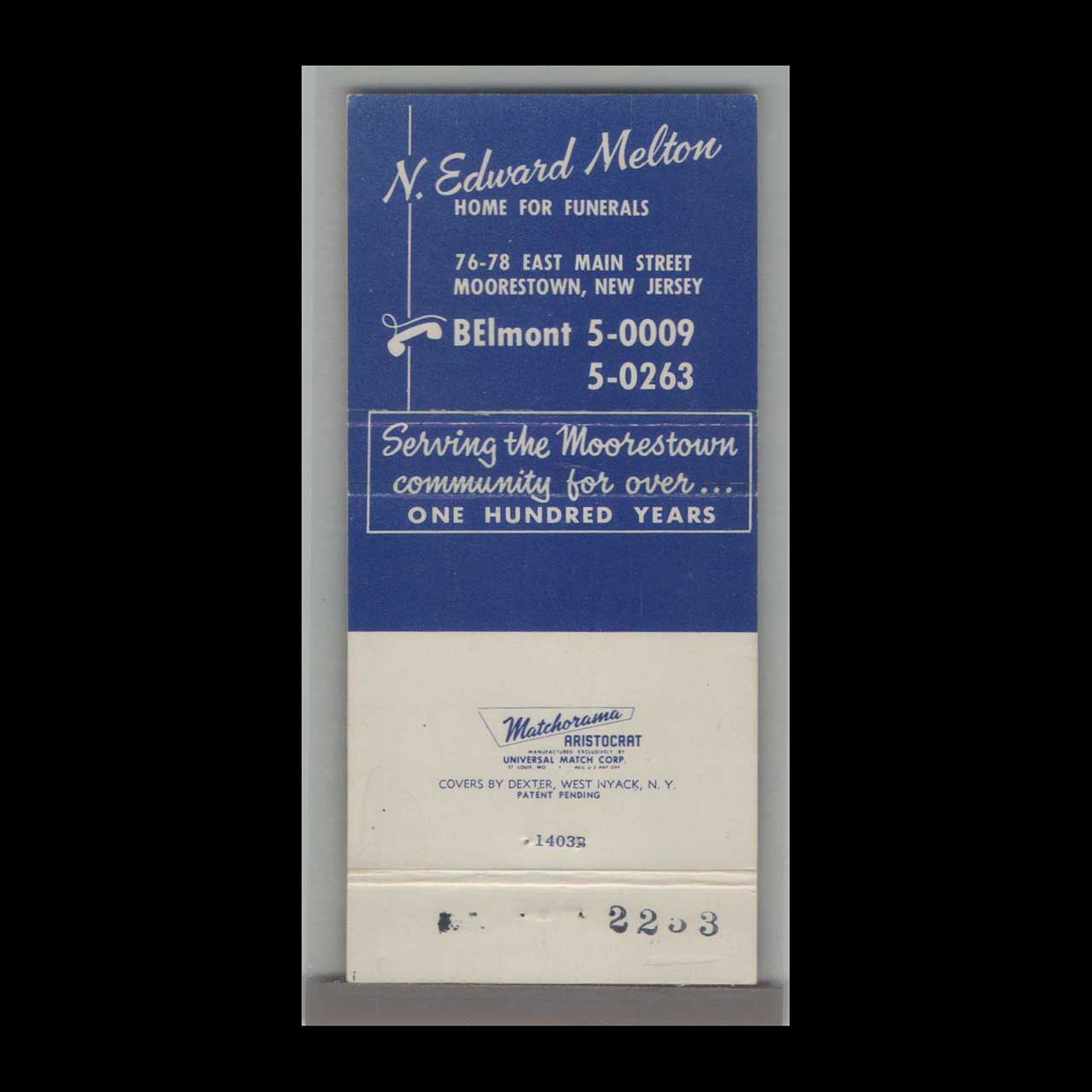 N. Edward Melton Funeral Home Matchbook Cover Moorestown NJ