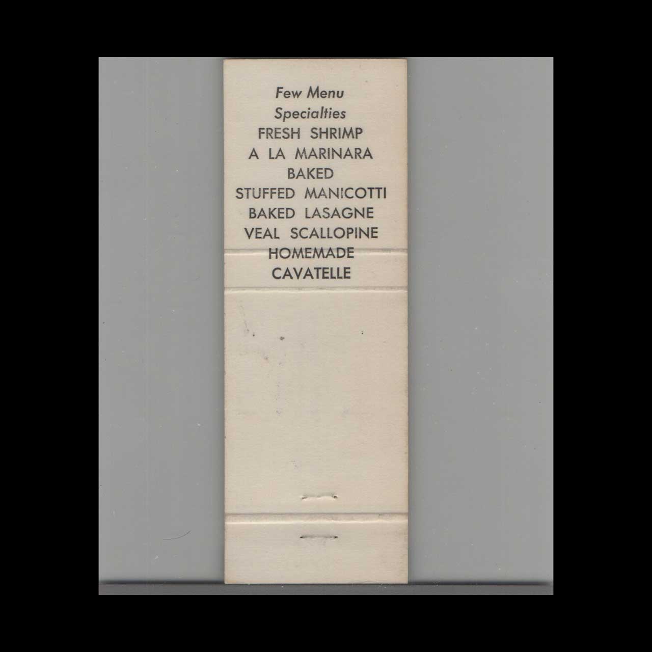 Nardi’s Italian Restaurant in East Springfield, MA, offered authentic Italian cuisine in a warm, inviting atmosphere. This vintage matchbook is a classic ephemera relic cherished by Americana collectors.