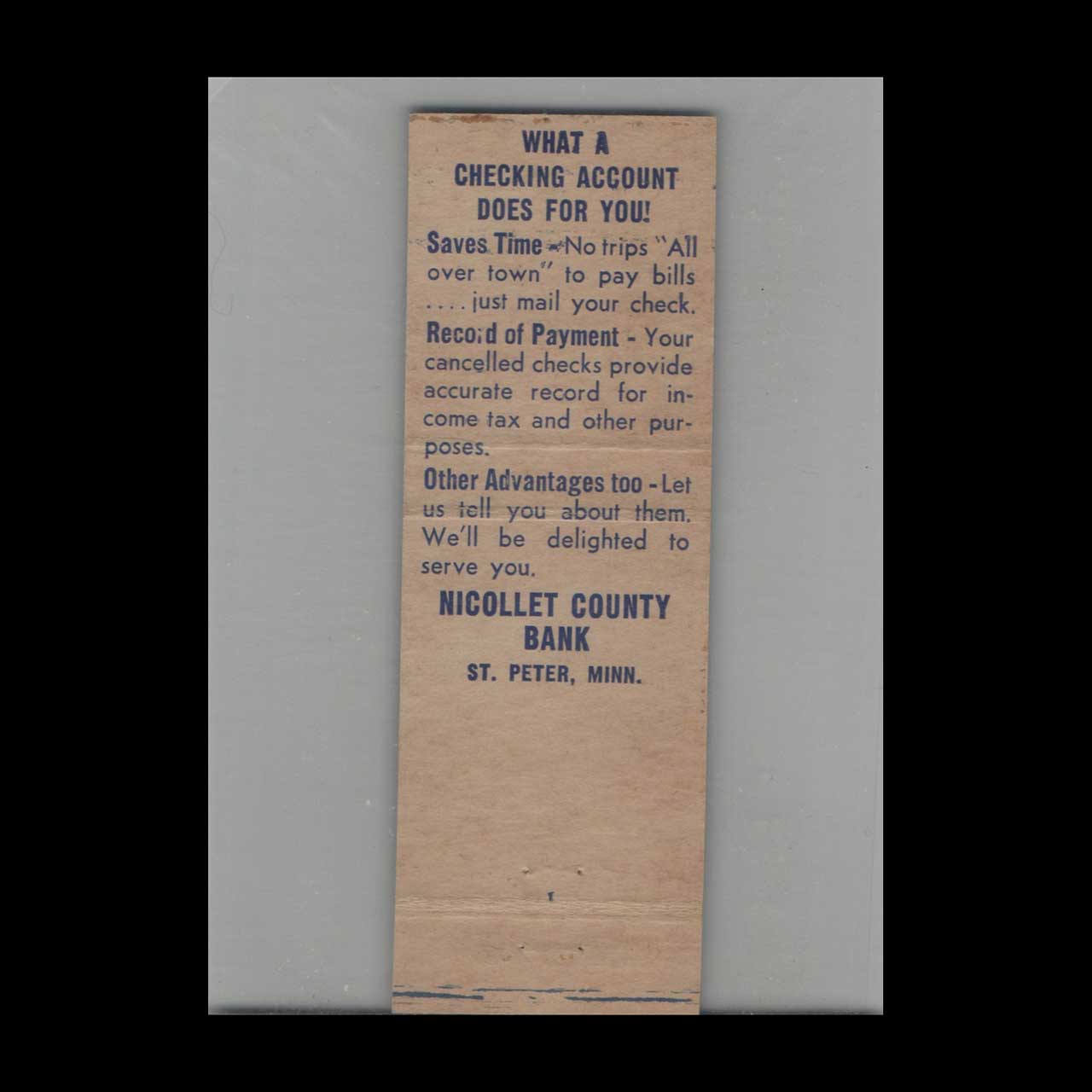 Nicollet County Bank Matchbook Cover St. Peter MN