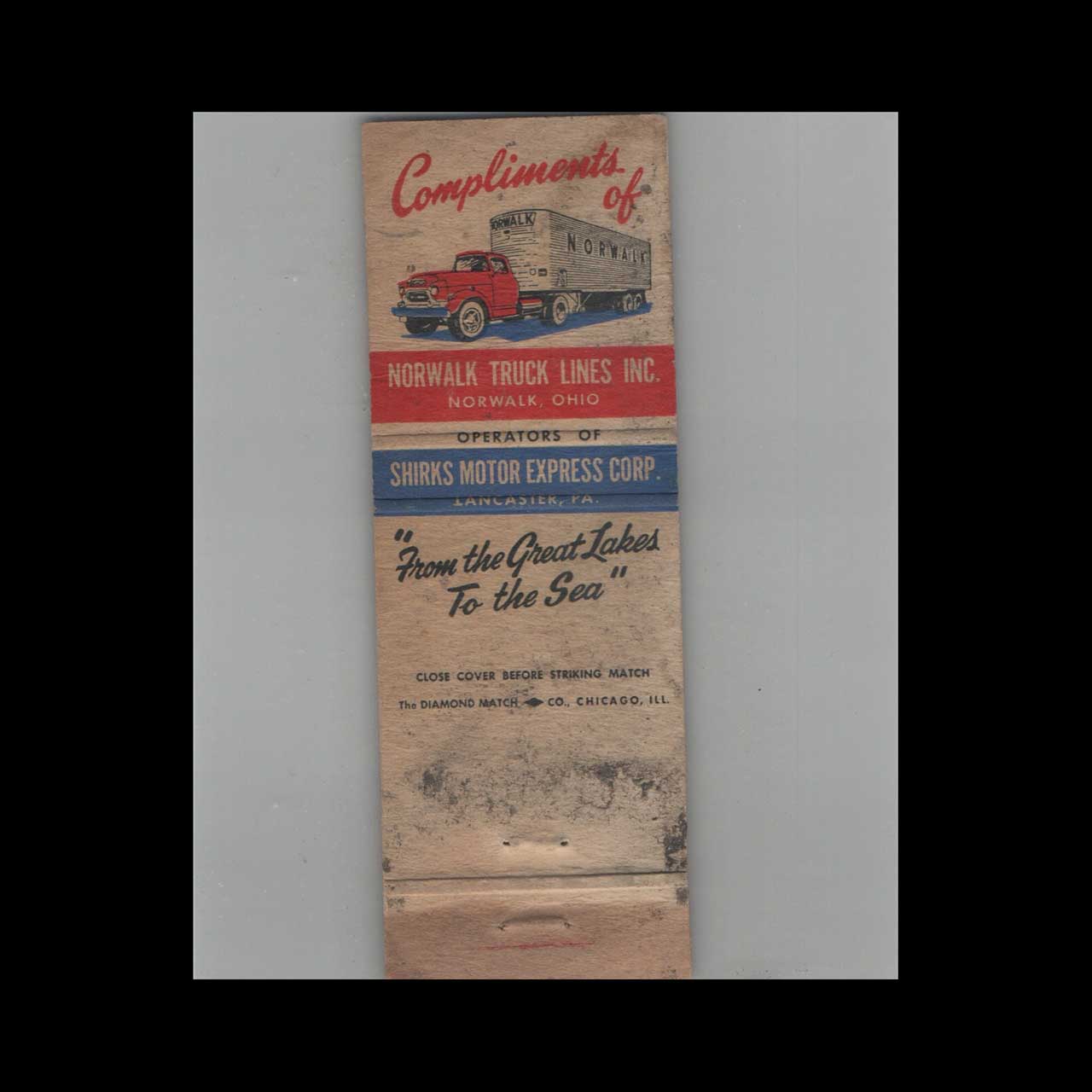 Norwalk Truck Line Matchbook Cover Lancaster PA