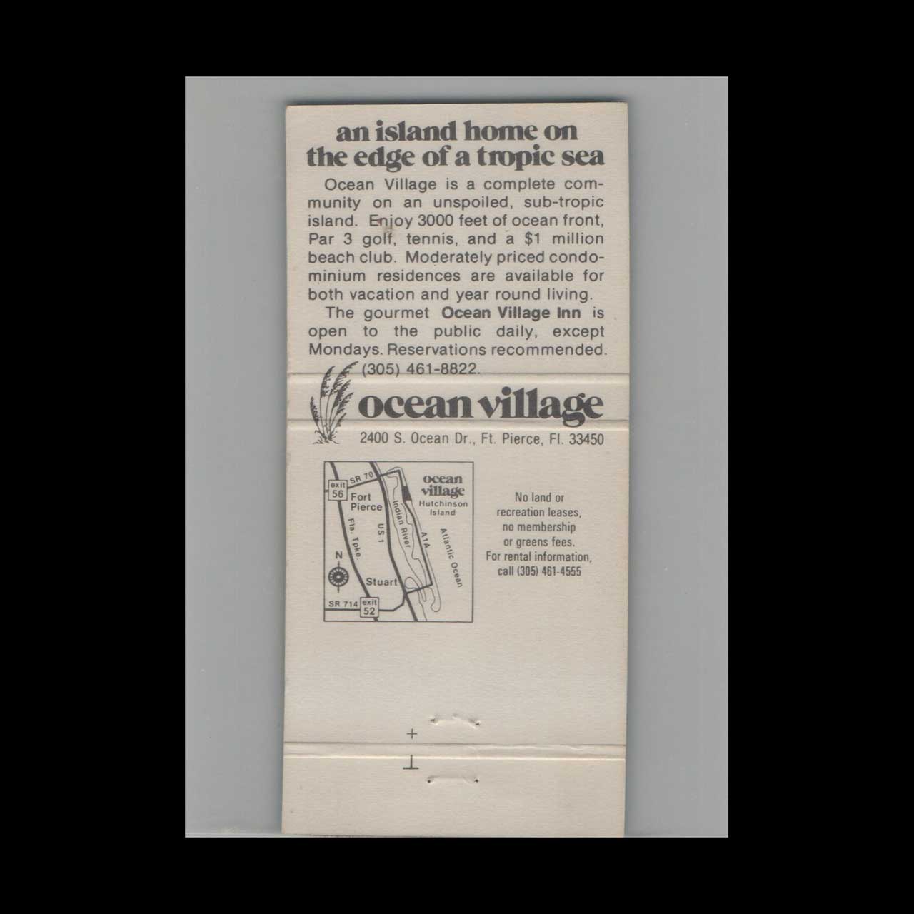 Ocean Village Fort Pierce FL Matchbook Cover