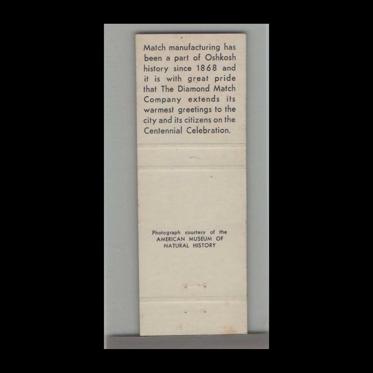 Celebrate Oshkosh, Wisconsins centennial with this vintage matchbook cover showcasing the City of Opportunity. A nostalgic piece of Americana for collectors and history enthusiasts alike.