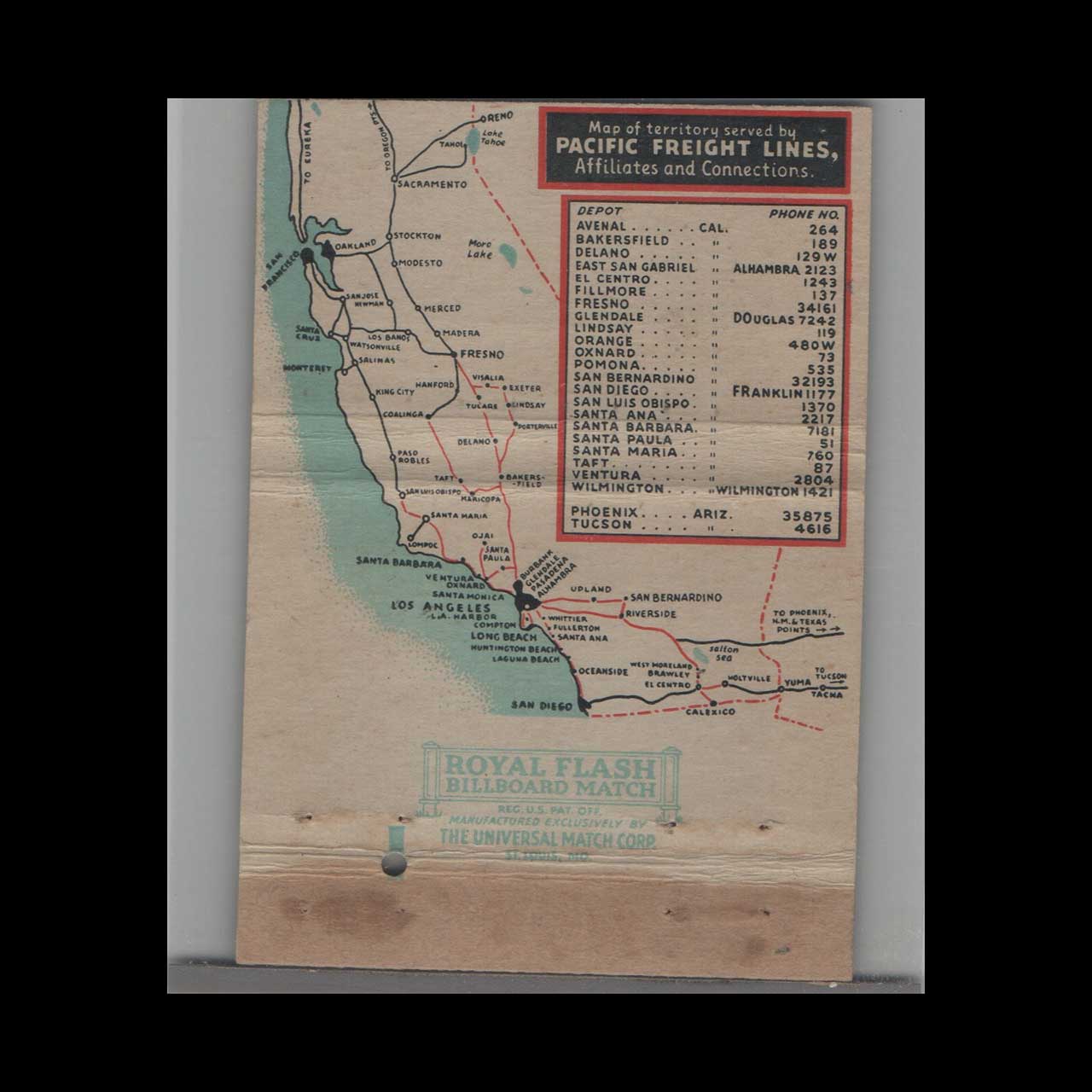 Pacific Freight Lines Matchbook Cover Avenal CA