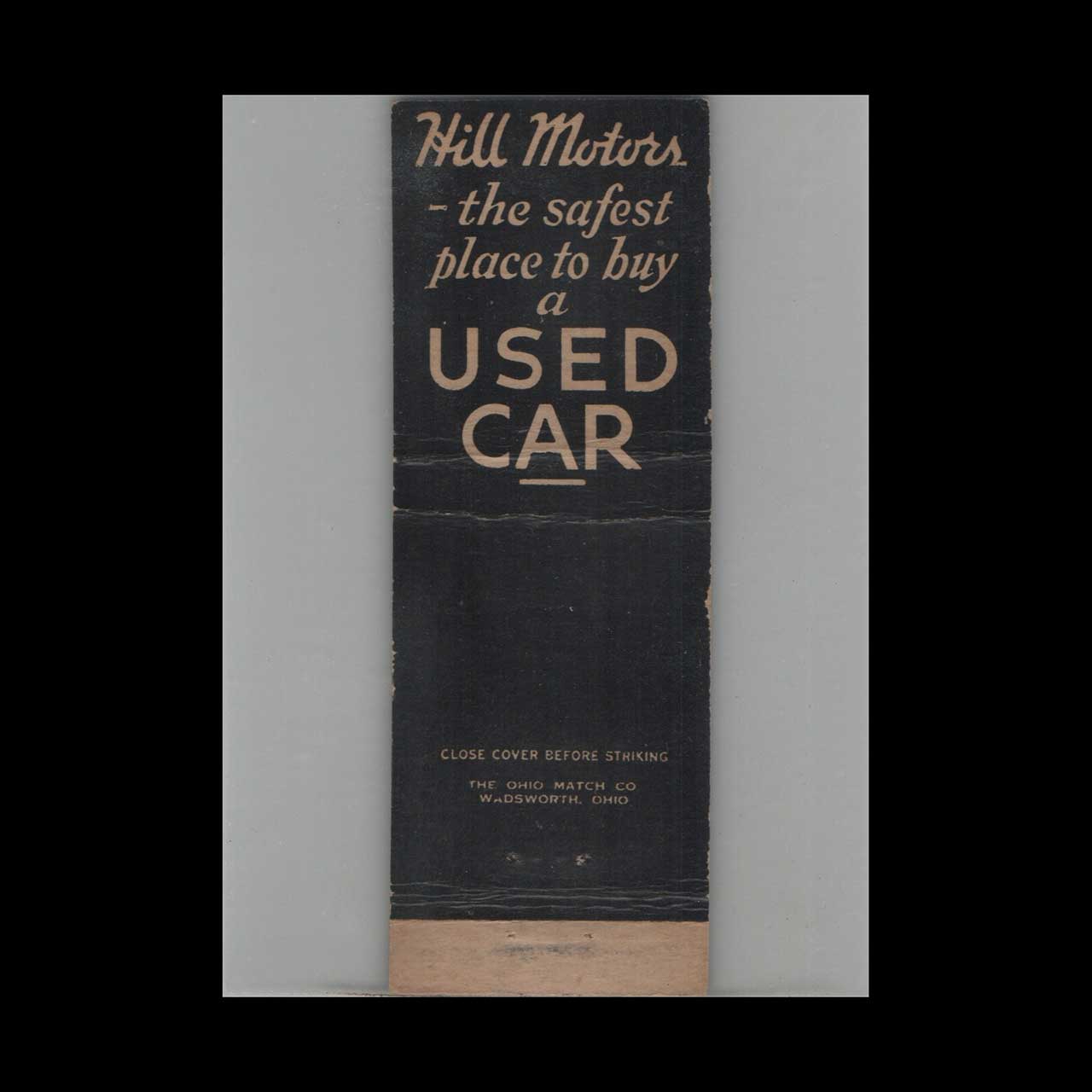 Hill Motor Sales Co., a distinguished Packard dealer in Oak Park, IL, showcased luxury automobiles with exceptional service. This vintage matchbook is a classic ephemera relic, cherished by Americana collectors.