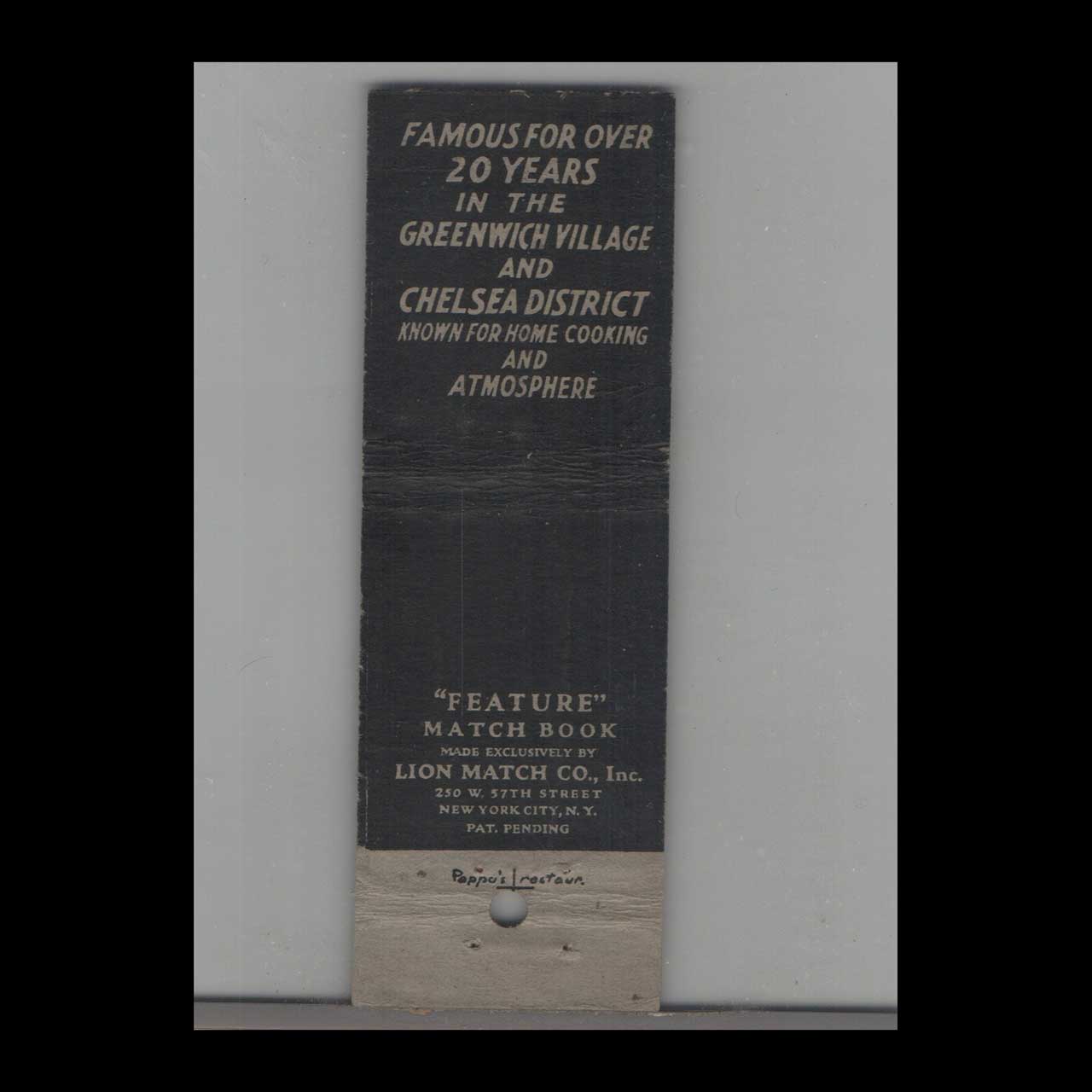 Pappa’s Restaurant Matchbook Cover Greenwich Village NYC