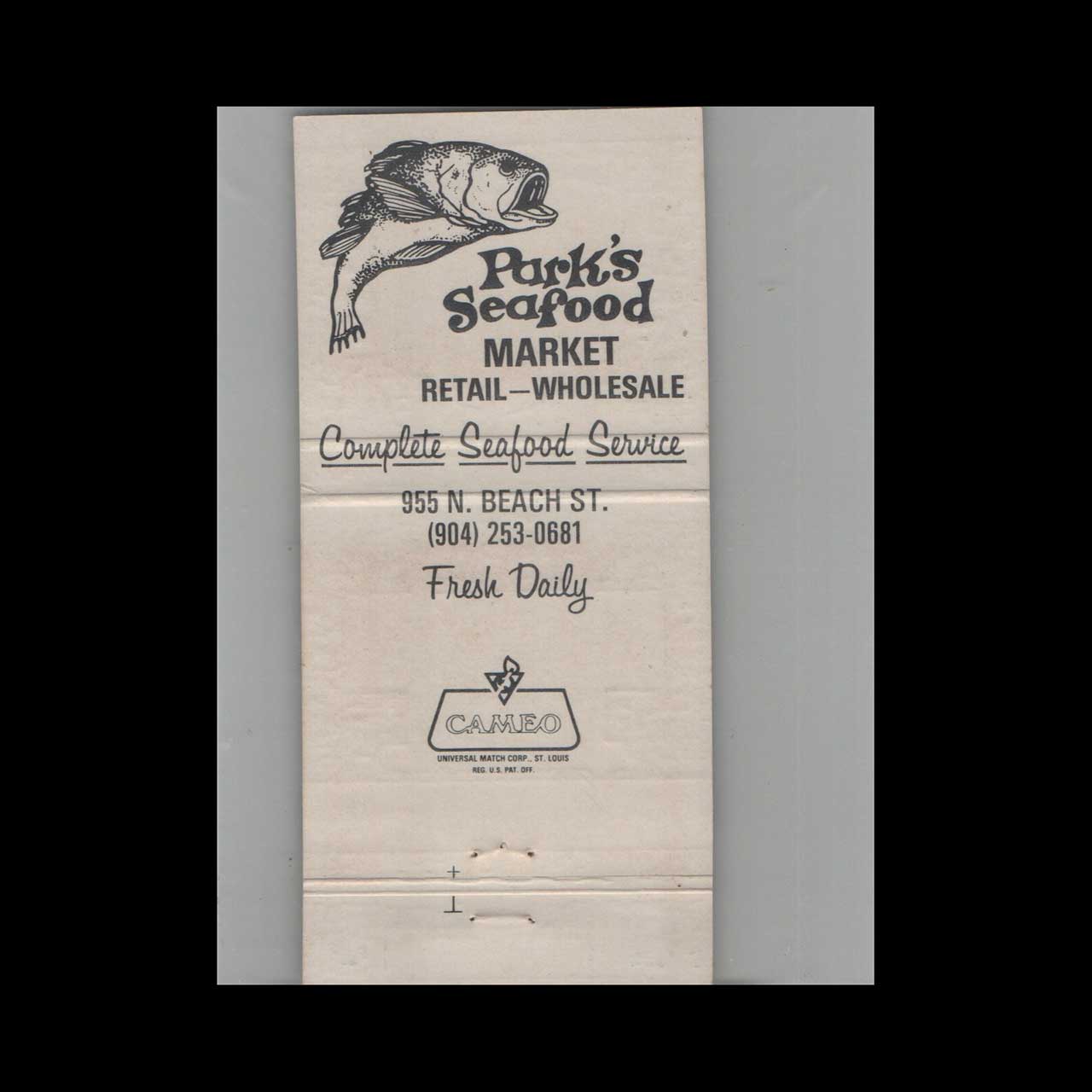 Park’s Seafood Restaurant Matchbook Cover Daytona Beach