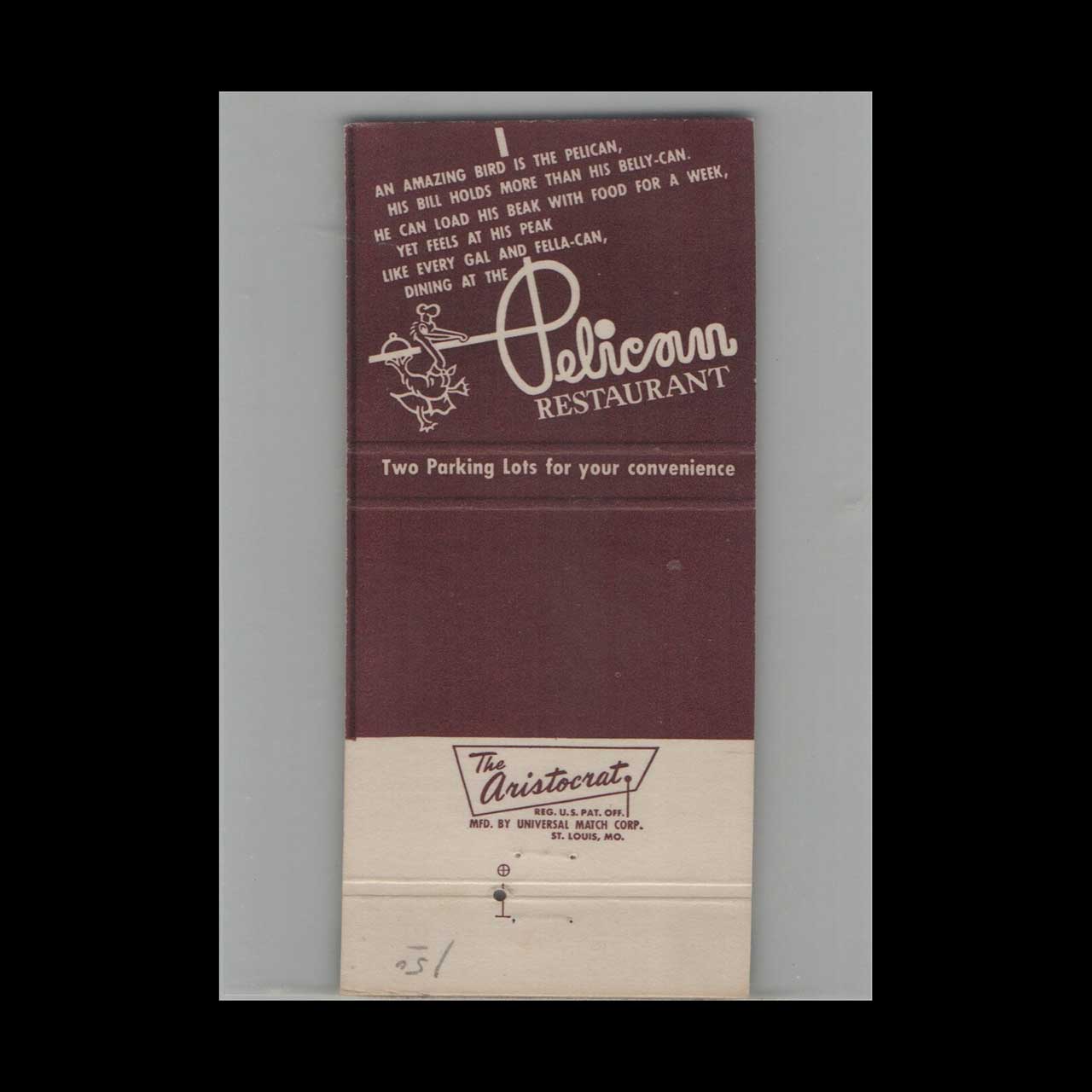 Pelican Restaurant Clearwater Beach Matchbook Cover