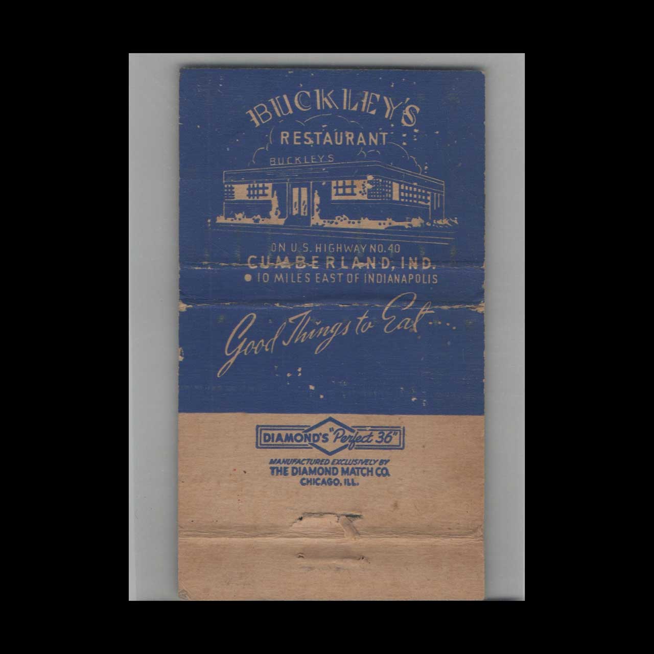 Perfect 36 Buckley’s Restaurant Matchbook Cover Cumberland IN