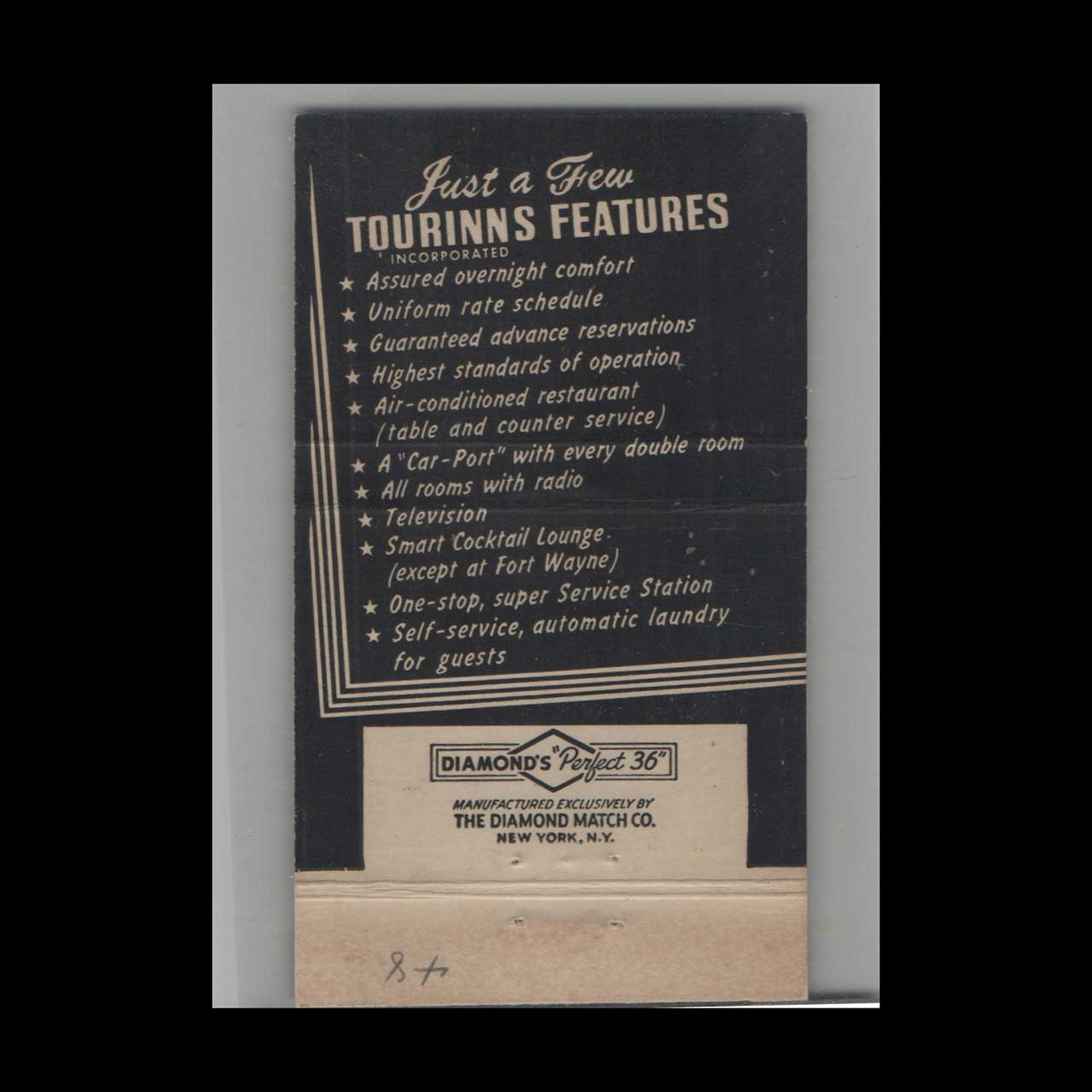 Discover the Perfect 36 Tourins Motor Court System in Fort Wayne, IN, a charming mid-century lodging destination. A nostalgic piece of Americana for vintage matchbook collectors.