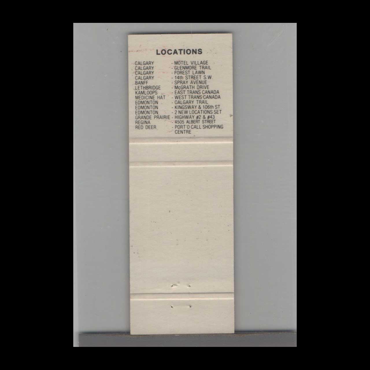 Phil’s Steaks & Pancakes Calgary Matchbook Cover
