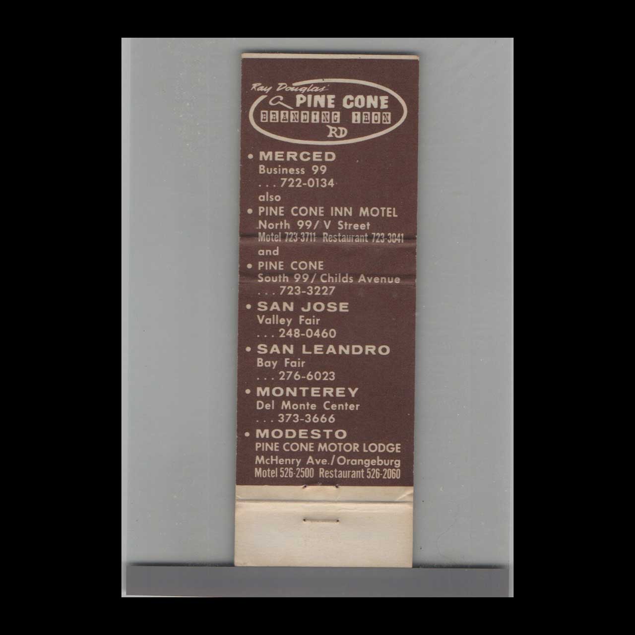 Pine Cone Branding Iron Restaurant Matchbook Cover Modesto
