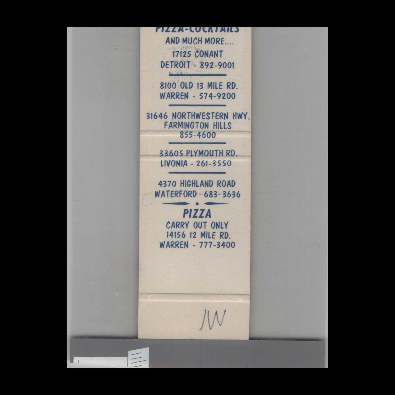 Pizza Buddy’s Pizza in Detroit, MI, served up classic, flavorful pies in a beloved local setting. This vintage matchbook is a nostalgic piece of Americana for collectors.