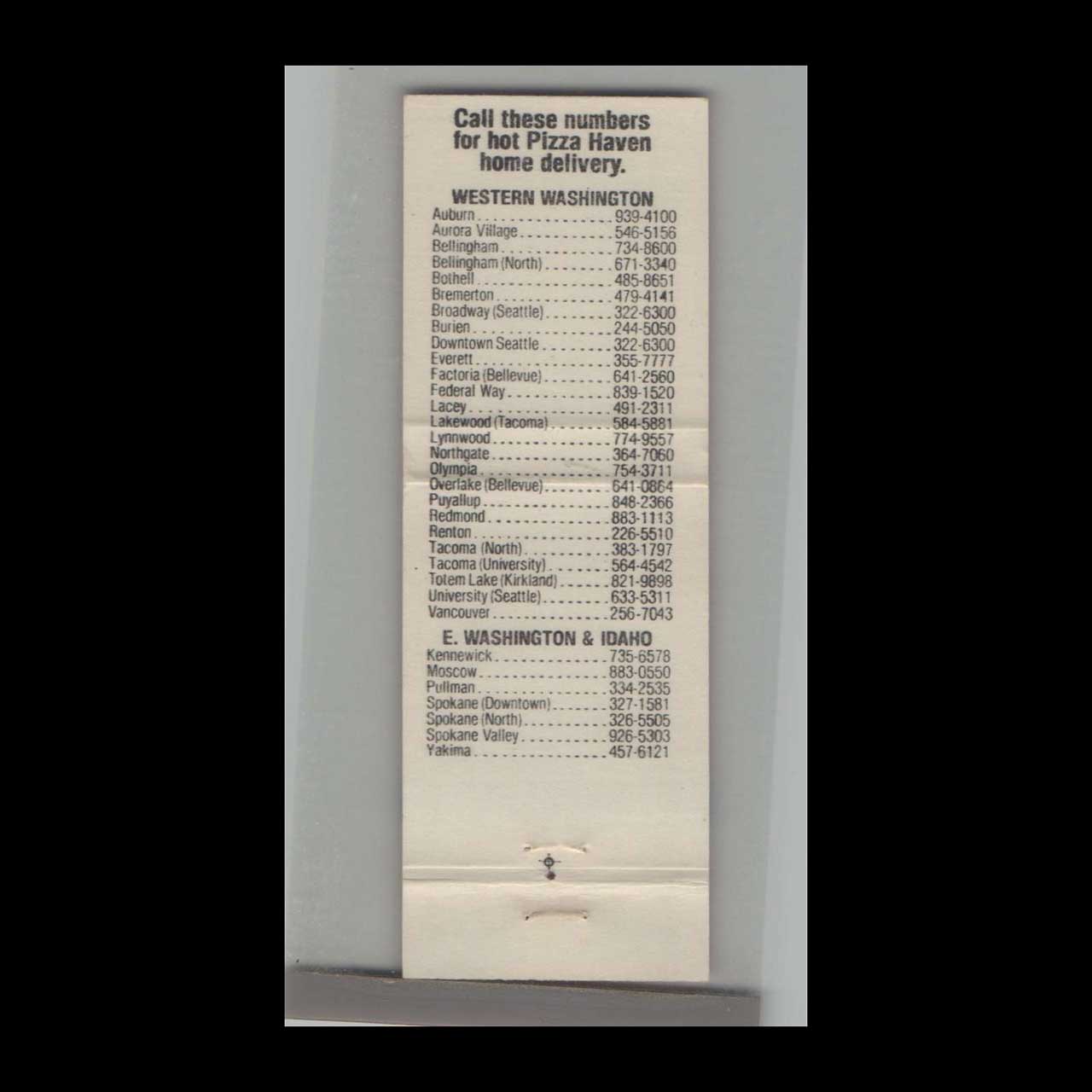Pizza Haven Matchbook Cover Western WA