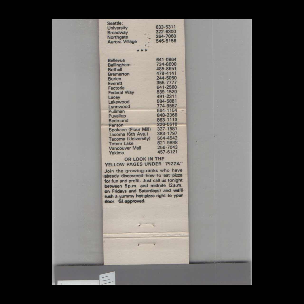 Pizza Pizza Haven Matchbook Cover