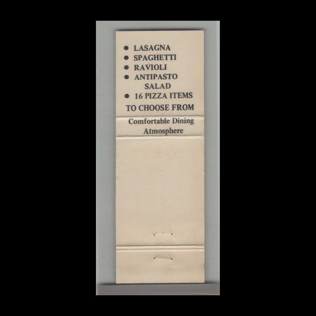 Pizza Villa in Okemos, MI, served authentic Italian-style pizza in a cozy, family-friendly setting. This vintage matchbook is a nostalgic piece of Americana for collectors.