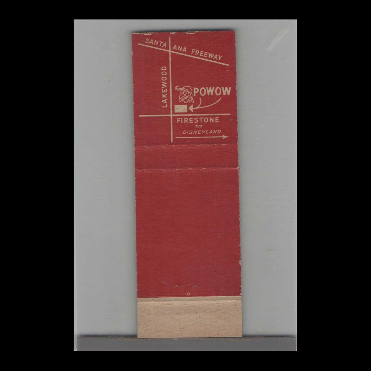 Discover Powow Restaurant Car Service in Downey, CA, a mid-century dining and automotive hub. A nostalgic piece of Americana for vintage matchbook collectors.