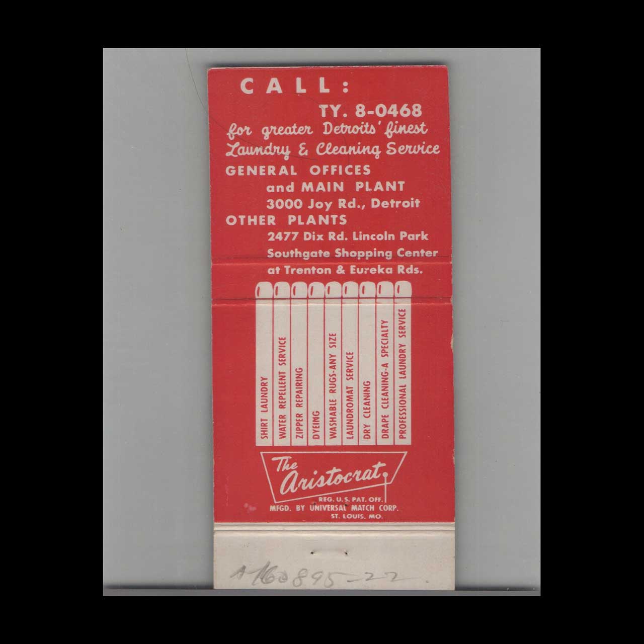 Queen Quality Shirt Laundry Matchbook Cover, Lincoln Park MI