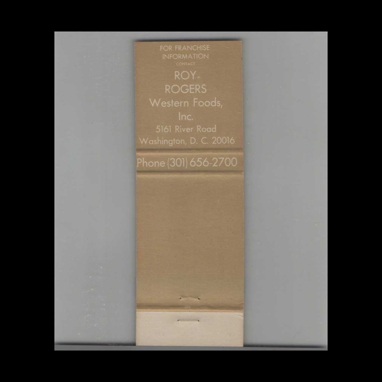 Roy Rogers Roast Beef Sandwich Matchbook Cover