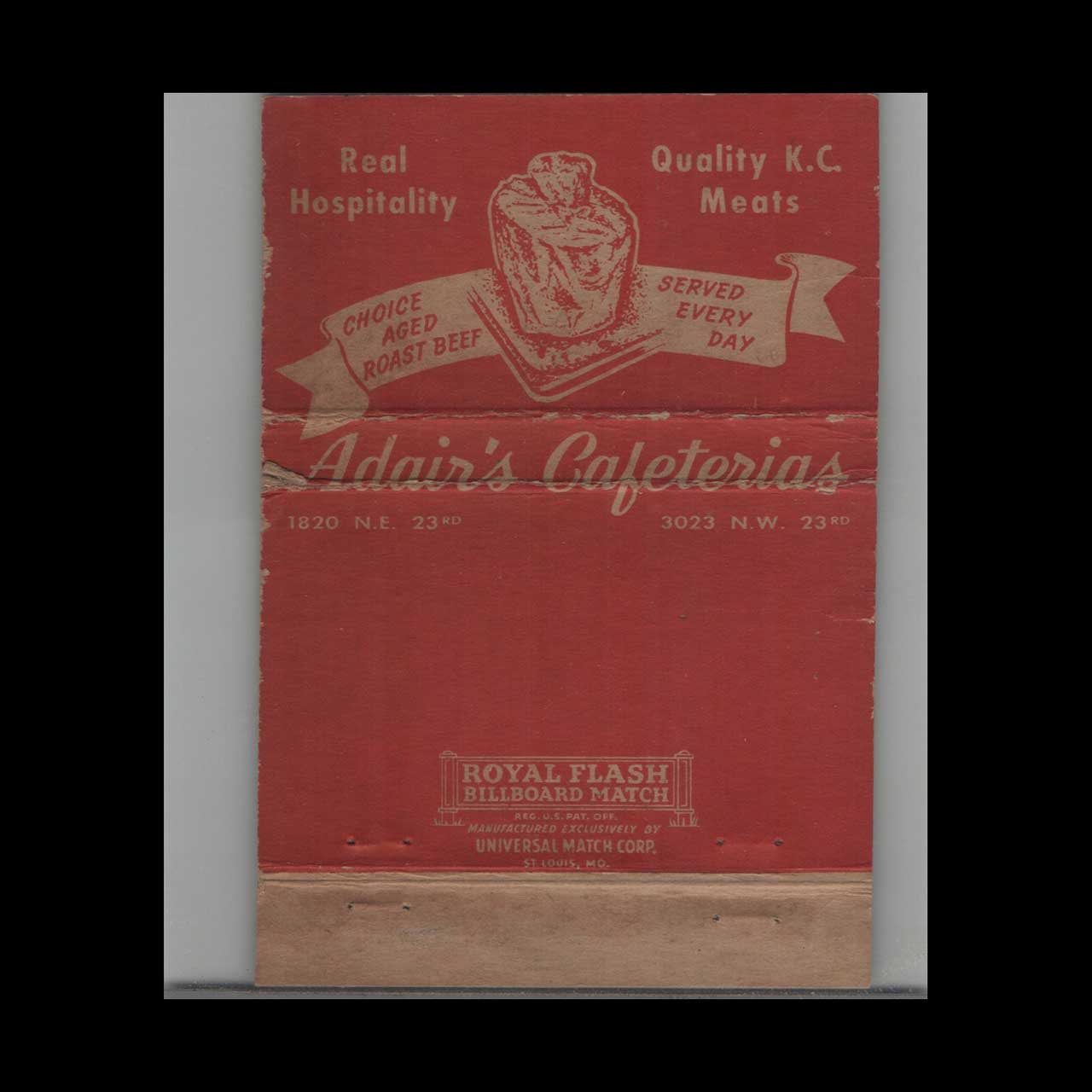 Royal Flash Adair’s Cafeterias OKC Matchbook Cover