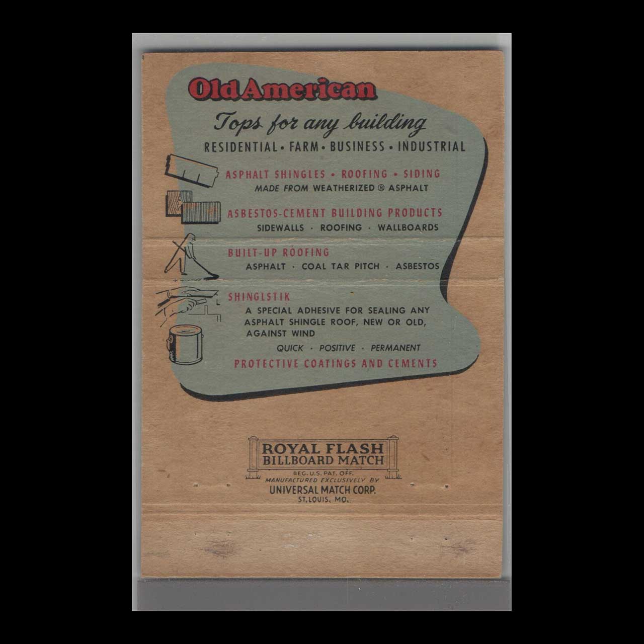Royal Flash Andrews Roofing Company of Carroll, IA, specialized in quality roofing services with Midwestern craftsmanship. This matchbook is a nostalgic piece of Americana for collectors and vintage ephemera enthusiasts.