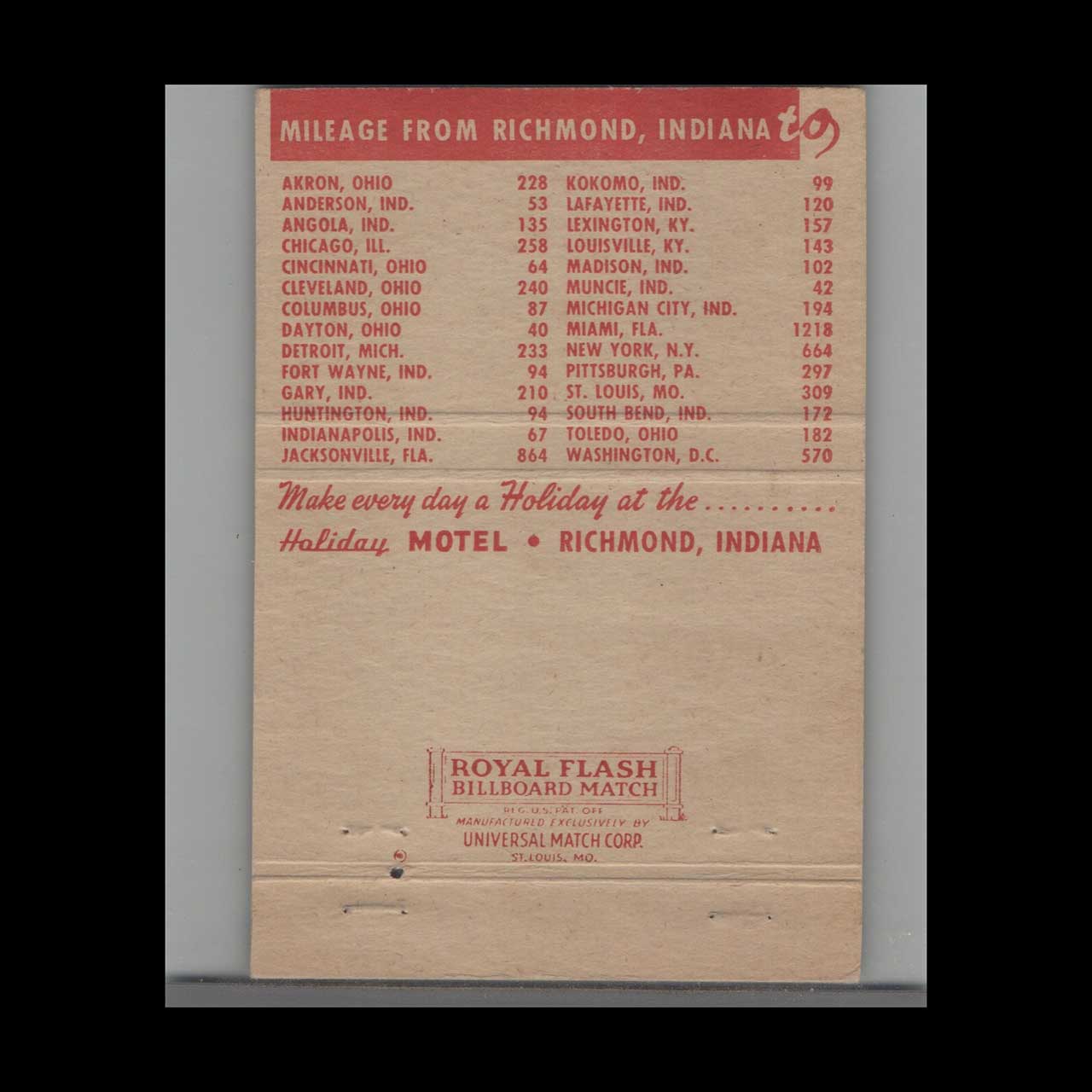 Royal Flash Holiday Motel Matchbook Cover Richmond IN